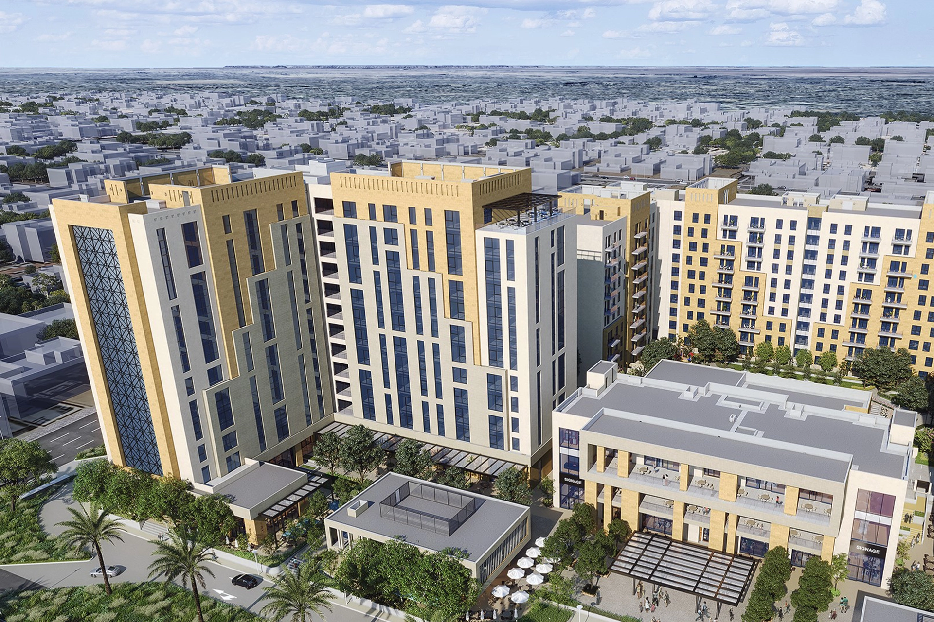 The development features an array of residential apartments, extensive amenities, varied retail and dining options, and includes two subterranean parking levels spanning the entire premises.